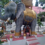 If you hit the jackpot you crawl three times under the elephant’s belly and make a wish. (If it comes true you must return to the temple and bring and offering to say thanks and show appreciation.) If you miss, try again. It took me three times till I got familiar with the undercarriage of the elephant. Time will tell if the wish comes true. If it does, I’ll be back to say thanks.