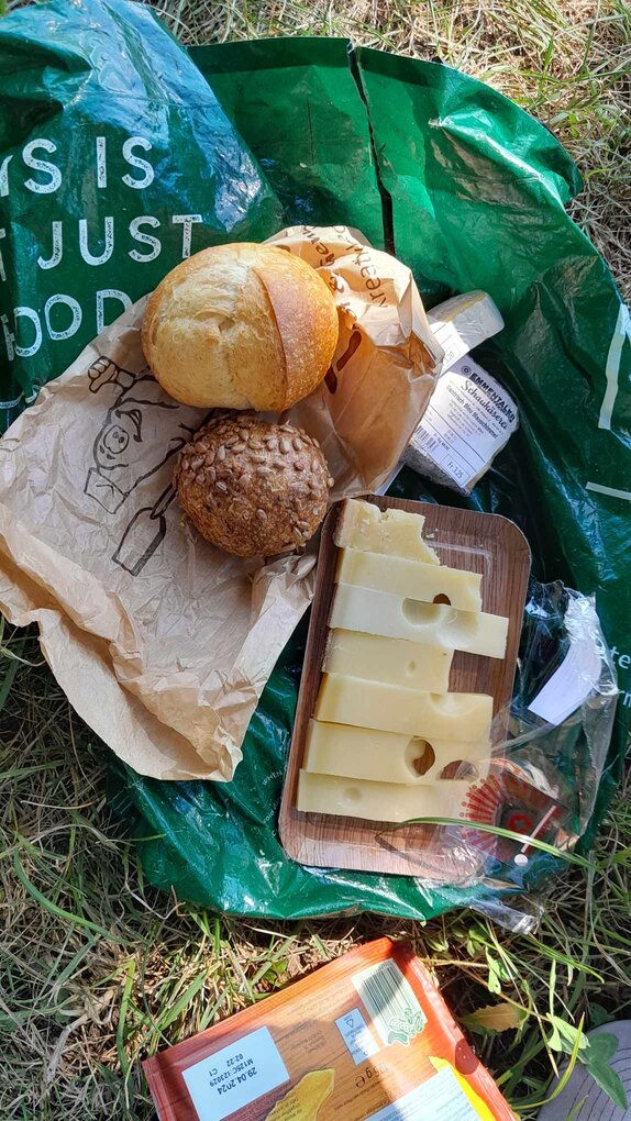 The cheese is available at various levels of maturity to suit different tastes and purposes: from the mild, nutty classic (matured for at least four months) to the extremely fruity “Réserve” (matured for at least eight months) to the full-flavoured “cave-matured” (matured for at least 12 months) and the unique “original taste” matured Emmentaler AOP (matured for at least 12 months). We bought a sampler kit of seven types, and tried them all.
