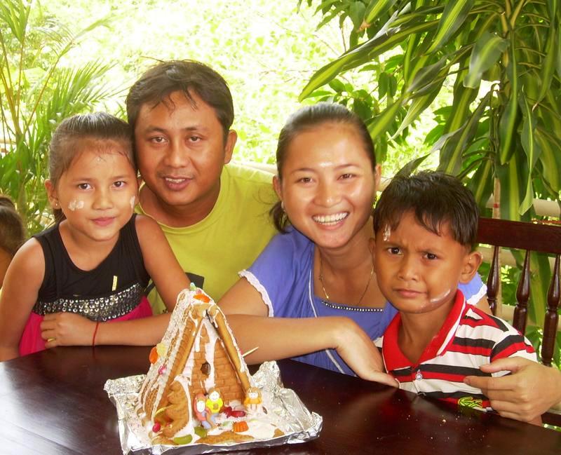 We built a gingerbread house together with his kids, Wichea and Rattana, at one point painting each others’ faces with icing as much as the gingerbread dormers and windows. The significance of our erstwhile construction might have been lost on the kids, but not on the adults, who quickly jumped into the fray, adding gum drops and strewing icing along the structure’s eaves.