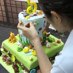 They’ve made a Noah’s Ark cake (on display in the cafe), handbags, elaborate wedding cakes with cascading blossoms, castles, high-heeled shoes, striped, spotted, glittered and flowered…They’re filled with white chocolate ganache, lime cream cheese, chocolate mousse, caramel ganache and orange buttercream.