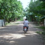 Rather than taking my customary left at the fork in the road just off the ferry landing, on Sunday I went to the right. In minutes, the sandy road had shrunk to a motorbike path – bumpy singletrack strewn with rocks, potholes and occasional steaming piles of cow dung. I rode past tiny shops, where people sold gasoline in liter-Pepsi bottles and half-naked children ran to the road, waving to the big baraing on a bicycle, their tiny greetings of “hello” echoing as I breezed along.