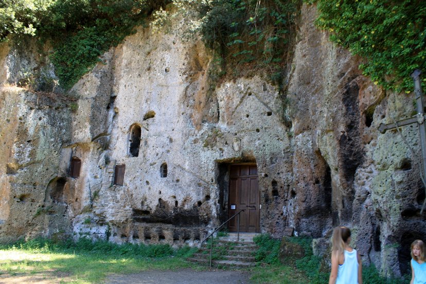 An ancient church carved into Sutri’s stone cliffs.