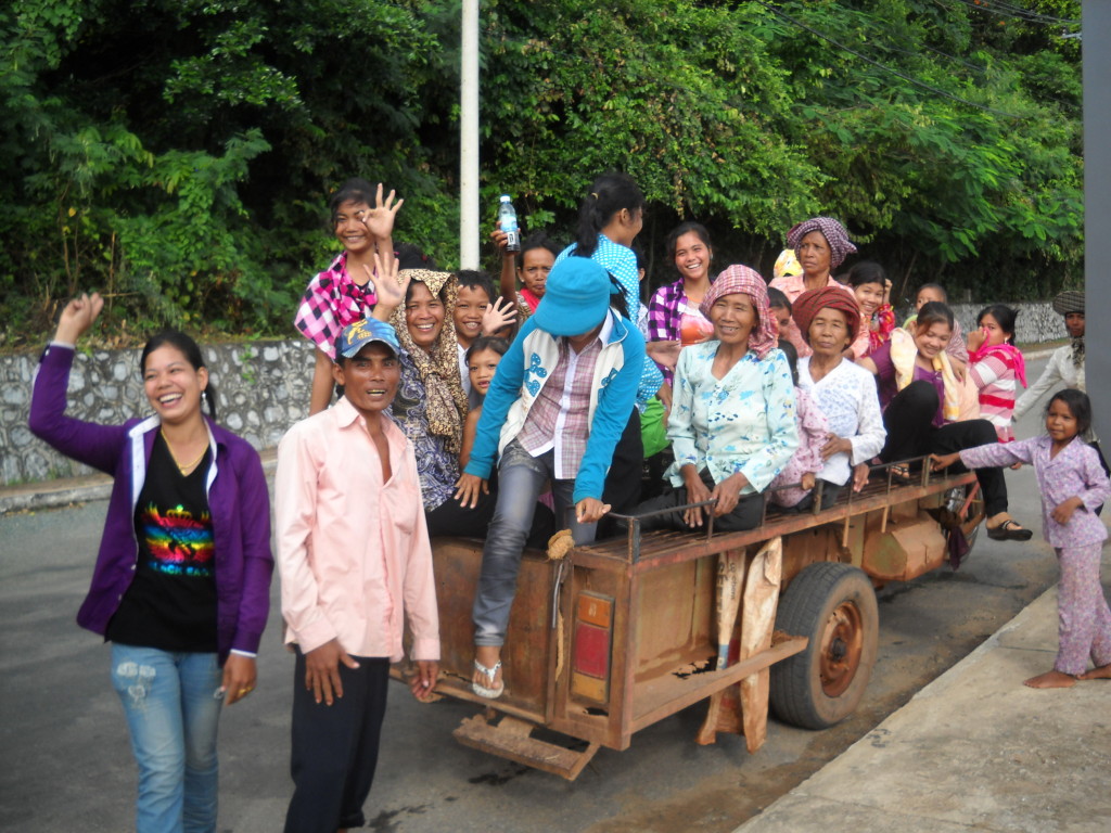 6) There’s a huge white statute of a siren on the road that runs along the ocean in Kep, and while crusing the area on a motorbike Saturday we stopped to have a look and take a picture or two. There were a handful of other people there when we stopped, but within minutes a series of flatbed trailers trowed by motorbikes pulled up, jammed with people of all ages.