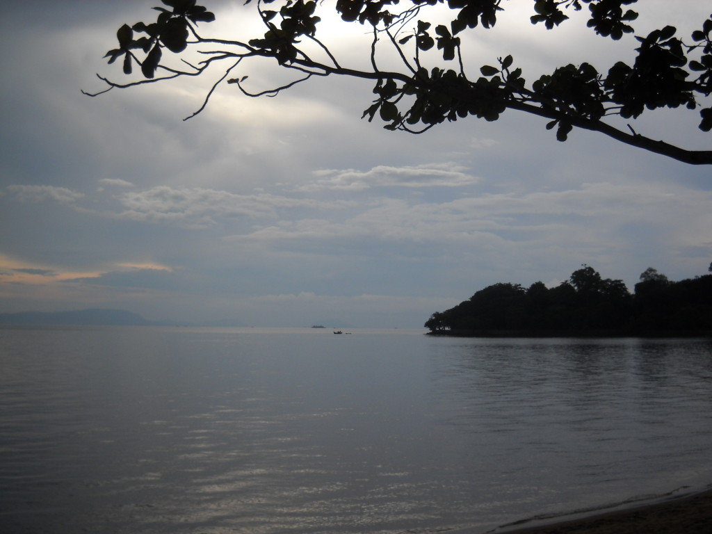 Khmer music played softly from a riverside restaurant somewhere up river, but only the fireflies’ light, the faint moonglow and the occasional bolt of lightning from afar interrupted the blackness where river met sky. As the moon rose, a faint grey glow illuminated the trees along the river, allowing one to distinguish the horizon from the river.