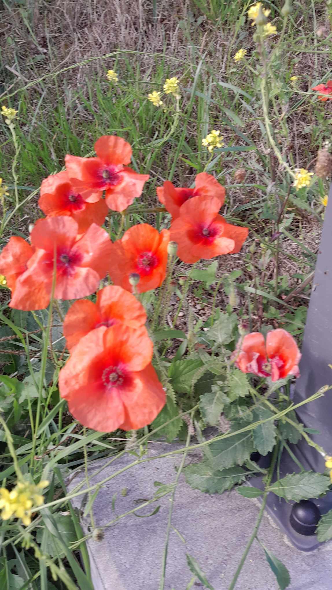 A solitary stand of poppies on a sandy hillock overlooking Dunkirk beach