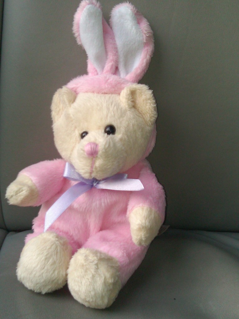 She’s a stuffed bunny rabbit I bought for Gabi to go along with her chocolate egg after our harrowing Easter in Las Vegas. She’s also one of my new best friends.