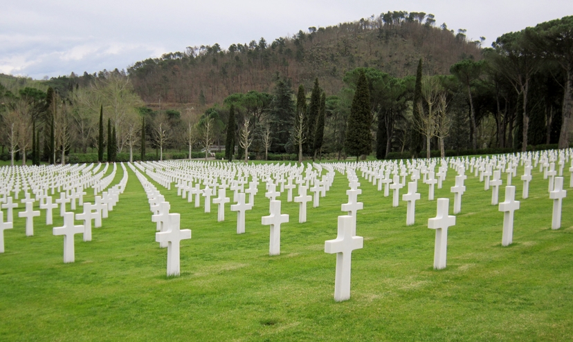 The wind blew a cold breeze across the rows of white grave markers spread across the gentle hillside. At the top of the slope, a marble pillar rose to the sky in memorial of the men and women who gave their lives in Italy during the Allies’ push from Sicily to the north as World War II dragged on.