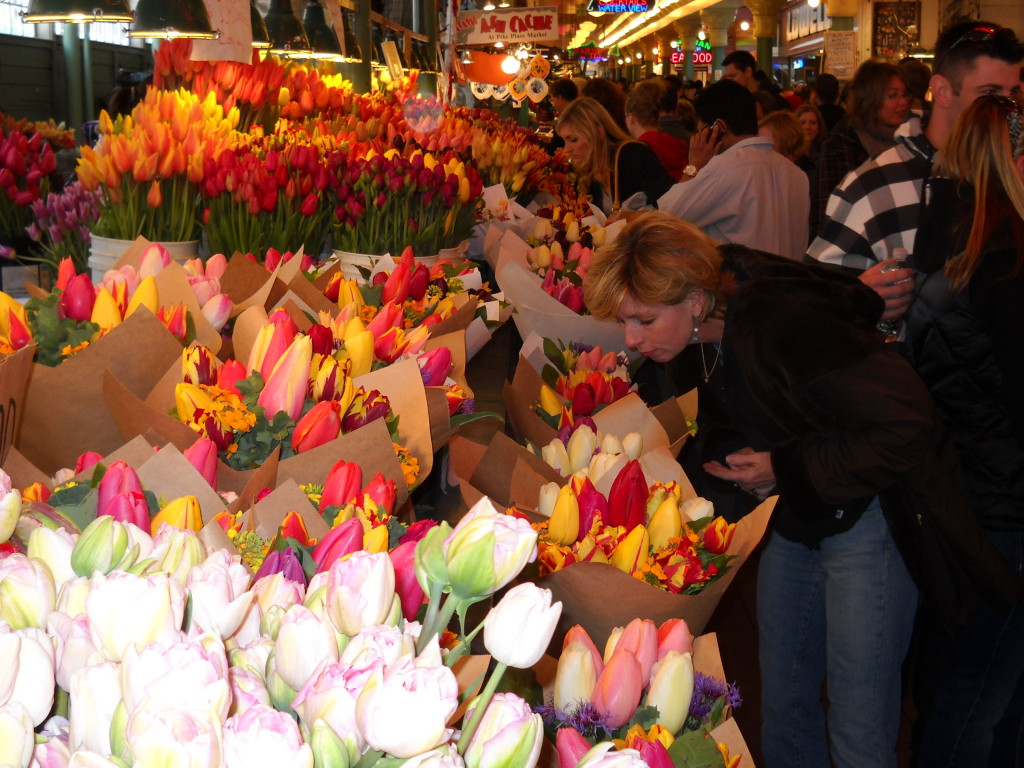 It drops you off a few blocks away from Pike Place Market, which, as one of the oldest continually operated public farmers’ markets in the country, has to be one of the most amazing markets I’ve experienced. One of the major attractions is the Fish Market where employees throw three-foot salmon and other fish to each other rather than passing them by hand and there are hundreds of vendors, selling brilliant fresh tulips (only $5 per bunch), breads, cheeses, olive oil and condiments, jewelry, crafts and much more.