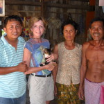 As we appeared before his home today, our rented Toyota Camry awash with thick red clay from the muddy road which leads to their home off National Road #1, Ang emerged from his home to welcome us. Shirtless and shoeless, clad in a traditional krama wrapped around his narrow waist, his dark brown eyes twinkled as he greeted us, taking both of my hands and kissing them in a deep sign of respect. After greeting Gabi the same way, he invited us inside.