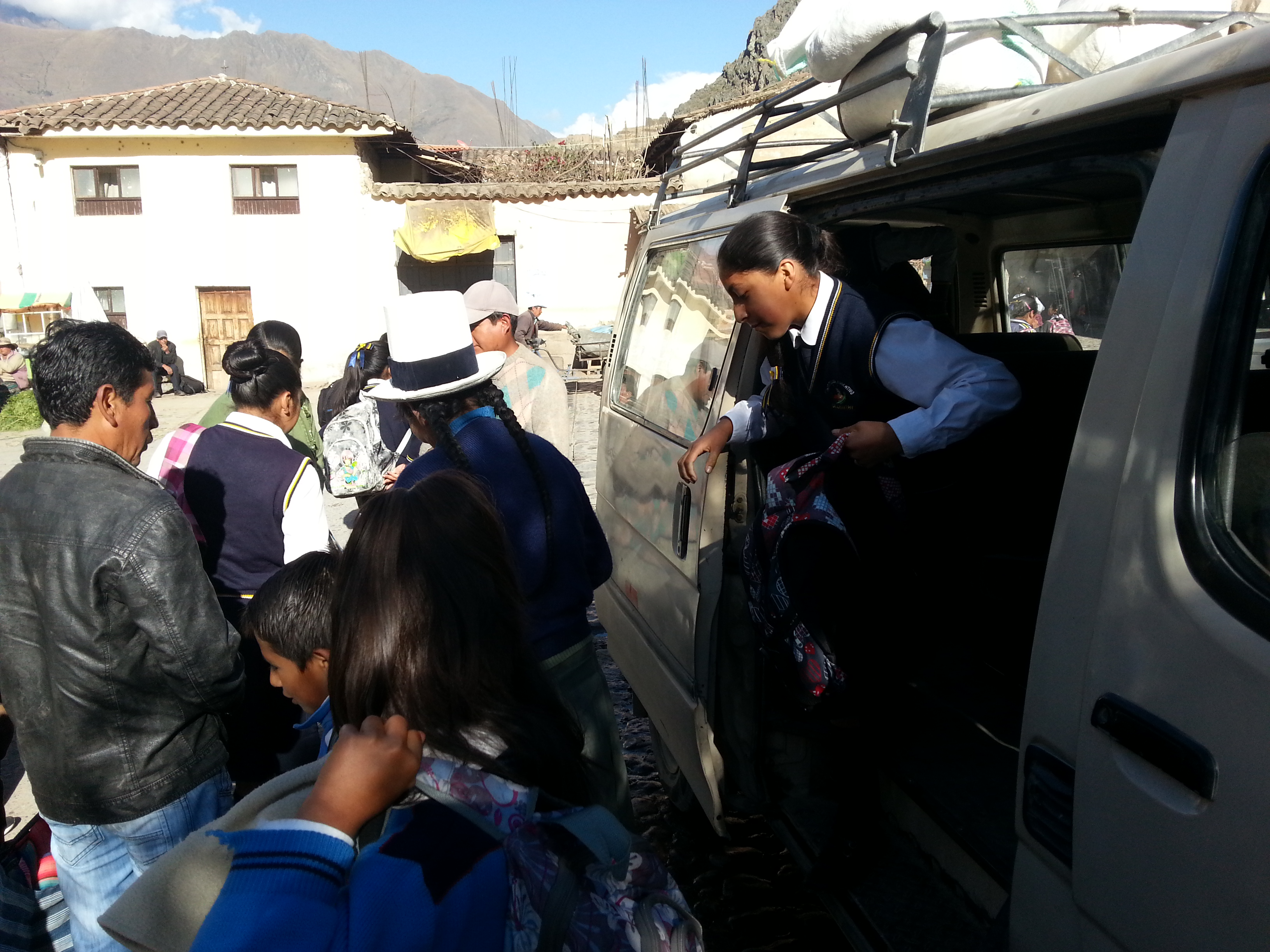 Her entry into the crowded van brought the headcount to 17 – pretty standard for the 30-minute run these inexpensive transport vehicles make from town to town throughout Peru’s Sacred Valley. Later on, I saw a collectivo packed with kids and their parents, the top loaded with wares for the market, and more than 22 people poured out when the vehicle rolled to a stop.