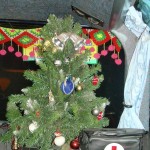 The tortured vehicle wheezed, sputtered and finally quit after mostly idling for nearly five hours amid the remnants of a crowd gathered to celebrate the last day of Pchum Benh and thousands of cars all vying for a spot on the sole ferry that would carry us across the river and on the way to Phnom Penh. It was bumper to bumper chaos, as we exchanged grins with soaked Cambodian guys sitting on tops of vans crammed to their roofs and beyond with people, luggage and enormous bags of vegetables and fruit. As if to add to the fun, driving rain had been pelting the bus for nearly an hour, and rainwater had found its inside via an escape hatch on the bus’s roof – directly over Gabi’s head. At first I caught the drips in an empty Pringles can – lunch, as it had turned out to be – then with the help of a friendly guy behind us we fashioned a plastic bag to catch the drips. It hung, like a makeshift colostomy, slowing filling with rainwater and swinging ominously about when the bus would move a few feet forward. What’s weird about this whole thing is the fact that it felt completely normal – almost predictable and to be expected. If we’ve learned anything about living in Southeast Asia, it’s to expect the unexpected and always show up with a flexible schedule and attitude. Oh, and be sure to bring snackfood for the bus. We might have known the day was going to be intriguing, as we nearly forgot our passports at the hotel in backpacker alley where we stayed Saturday night in Ho Chi Minh City. Originally scheduled to head back to Phnom Penh on Saturday, we decided to stay in HCMC Saturday night and grab an early bus back on Sunday. It was a great decision, as we saw a couple of incredible outdoor theatrical productions presented as part of Hanoi’s 1000-year celebration and a great jazz singer at our new favorite club, Jazz ‘N Art Cafe. We were a bit foggy around the brain when we left the hotel Sunday morning, and the receptionist saved our tails when she scrambled down the stairs, passports in hand, as we prepared to walk to the bus station and board for Phnom Penh. We made our way to the bus – which the guy who sold us the tickets said was a beautiful “new bus” – and were happy to see we’d had the last two seats reserved for us, in the front row, facing a dusty Christmas tree and the TV screen. (Seethe vision in the photo above.)
