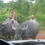 We passed herds of scrawny cows blocking the road and enormous grey buffalo emerging from mud puddles.