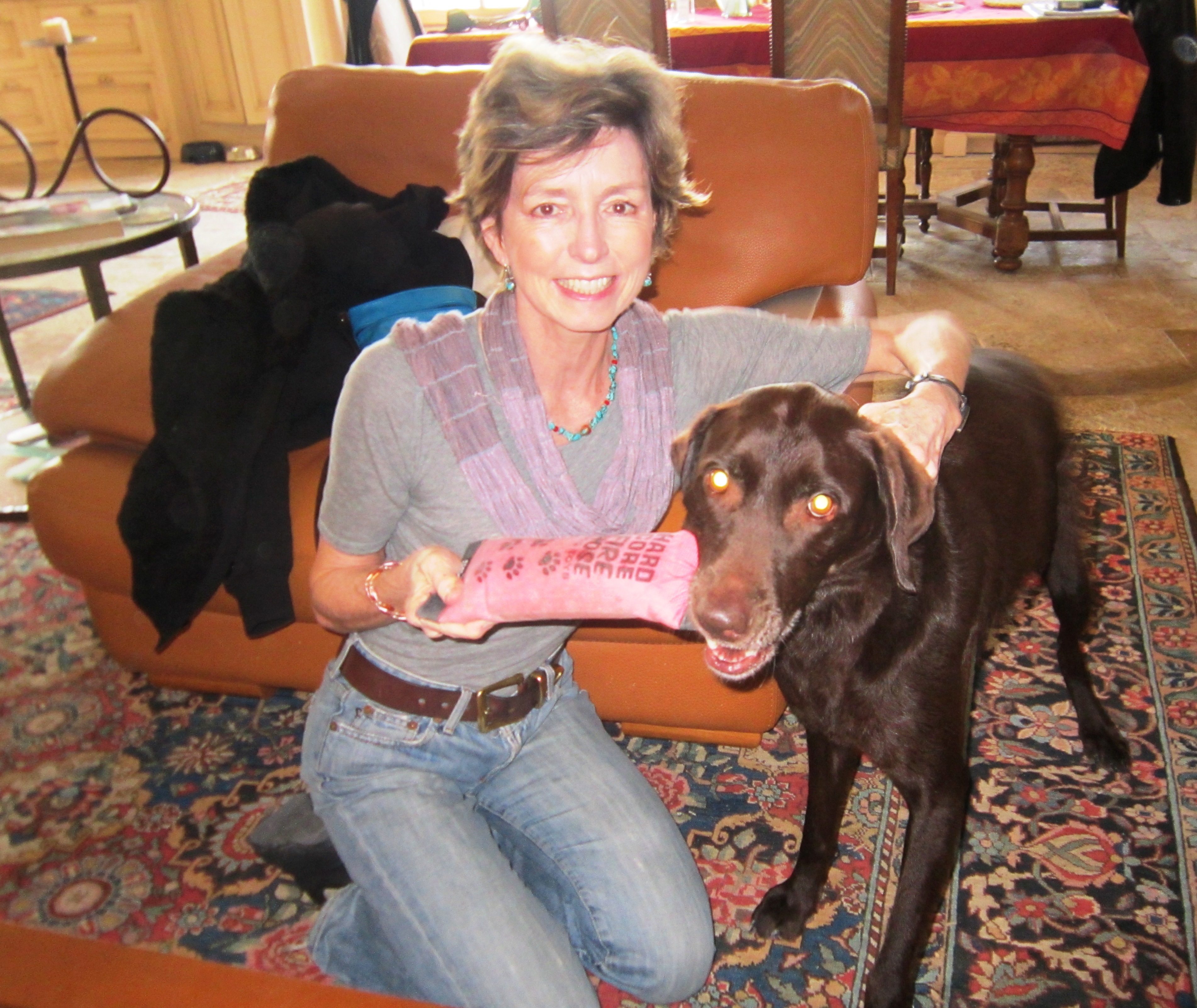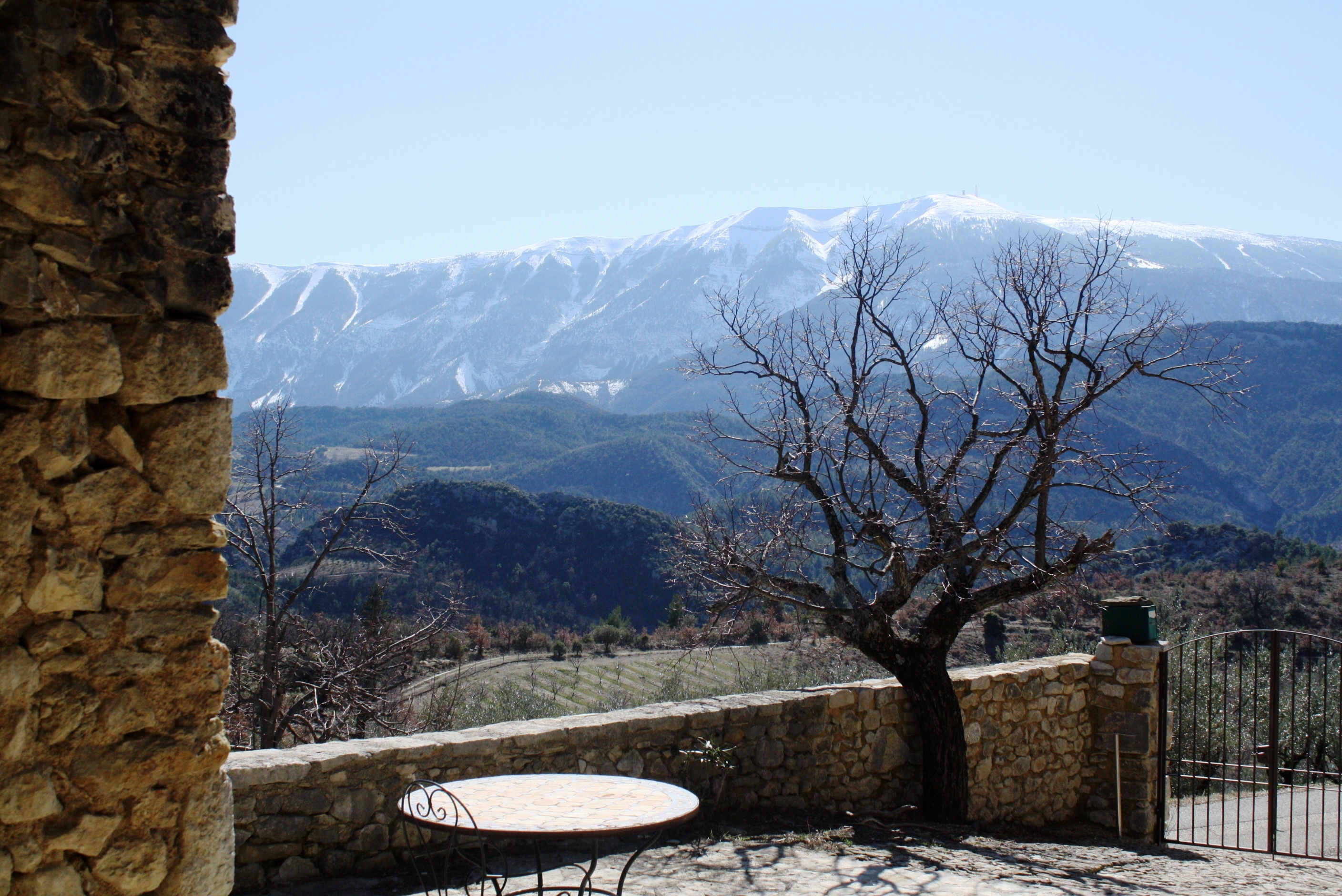Six weeks later, after a stint in London, we found ourselves back in France, in another place we’d never heard of: Plaisians. As we pulled into this tiny village and wove our way through the mountains to our new home, Skip gazed up at snow-capped Mount Ventoux with delight. This iconic climb in the Tour de France was practically in our back garden- just one of the many delights of the gorgeous three bedroom house where we were staying. Another was the enormous fireplace. Yet another was the gourmet kitchen (which Skip put to good use). And best of all was Noisette, a chocolate lab who raised the bar on doggy perfection. There was also a bit of strenuous log chopping and chain sawing that needed to be done as well as daily cleaning of the glass door on the fireplace but it was a small price to pay for three weeks in this mountain paradise (and easy for me, since Skip was the one who did it).