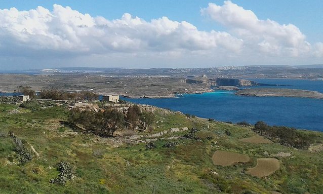 Looking from Gozo toward Malta, past the famous Blue Lagoon of Comino
