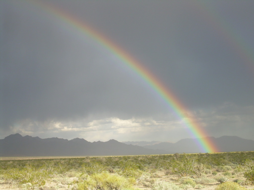 Not one or two, but many. In succession, stretching from the ground only a couple hundred yards from the roadside, where we sat in our stopped car, still, silent, watching the magic unfold. Brilliant hues of purple, yellow, orange and red reached towards the heavens then plummeted to earth, bringing its palette with it to mesh with the brown dust of the desert.