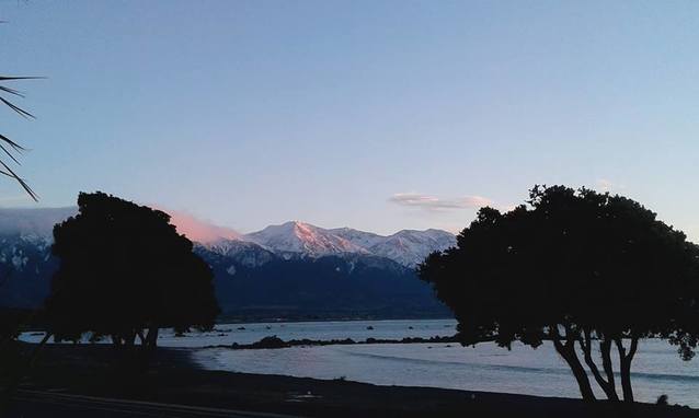 Sunrise over the mountains in Kaikoura