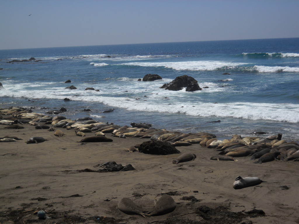 Heading up the breathtakingly beautiful coastal road toward San Francisco, we made more than a few stops along the way to admire, take photographs or poke around the quaint seaside towns (Cambria has become our favorite so far). But the sign which most compelled us to stop was “Elephant Seal Viewing Area Ahead”.